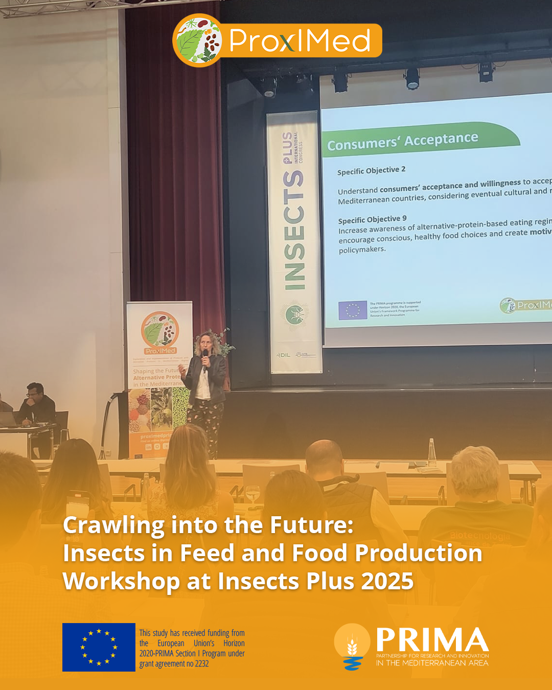 ProxIMed, a PRIMA-funded project dedicated to sustainable protein sources for Mediterranean food systems, was proud to co-facilitate the “Crawling into the Future: Insects in Feed and Food Production” stakeholder workshop, jointly organised with the CIPROMED, ADVAGROMED, and SUSINCHAIN projects.